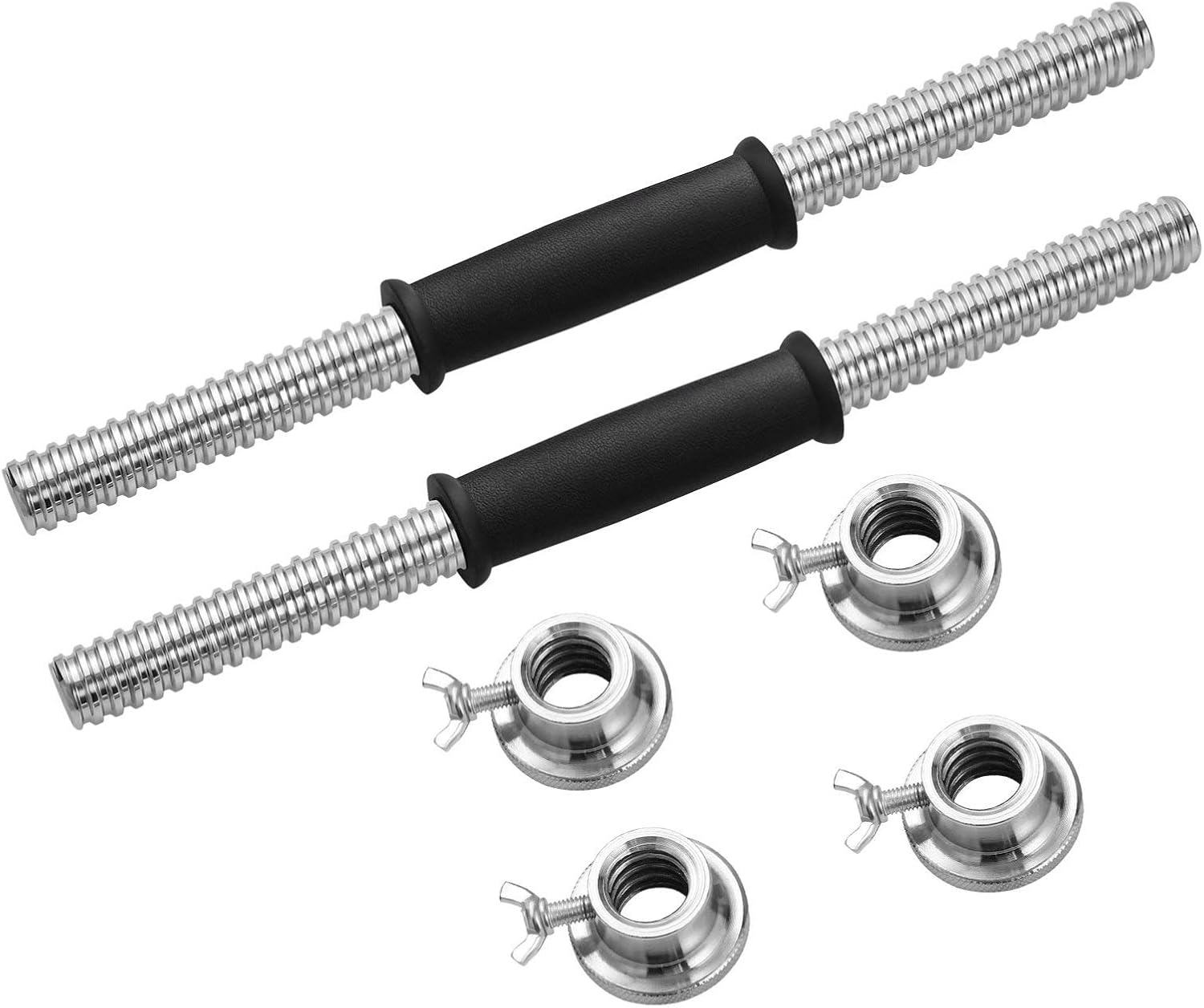 2pcs Dumbbell Bars Cast Iron Dumbbell Handles with 4 Double Safety Nuts Barbell Bars Covered with Rubber Weightlifting Accessories for Gym Sports WorkoutDescriptionDumbbell is ideal for various warm ups sports and strength workouts like arms, shoulder, abdominal, legs or back . Our dumbbell bars with , suit for dumbbell . Provides an economic and convenient way to realize fitness without leaving your home.Features- Color: As shown.- Material: Cast iron, rubber.- Length: 40cm/15.74in.- Comes with 2pcs dumbbell bars, constructed with solid and cast iron, 40cm long each, very firm and durable, with longer service life.- You will receive 2 dumbbell bars, suitable for all standard 1inch weight plates. And equipped with 4 double safety nuts, more convenient to use, the dumbbells easily.- Rubber handle with non-slip textured surface helps you can grip firmly during . Accommodates weight plates with 1-inch center hole.- Offer larger room for adding more weight plates and increase challenge, great for both beginners and intermediate users.- Great for use with weight plates, or just use the bars directly, fit for lightweight sports lovers. An effective way to strength imbalances.- Color: As Shown.Package Including2 x Dumbbell Bars4 x Double Safety Nuts
