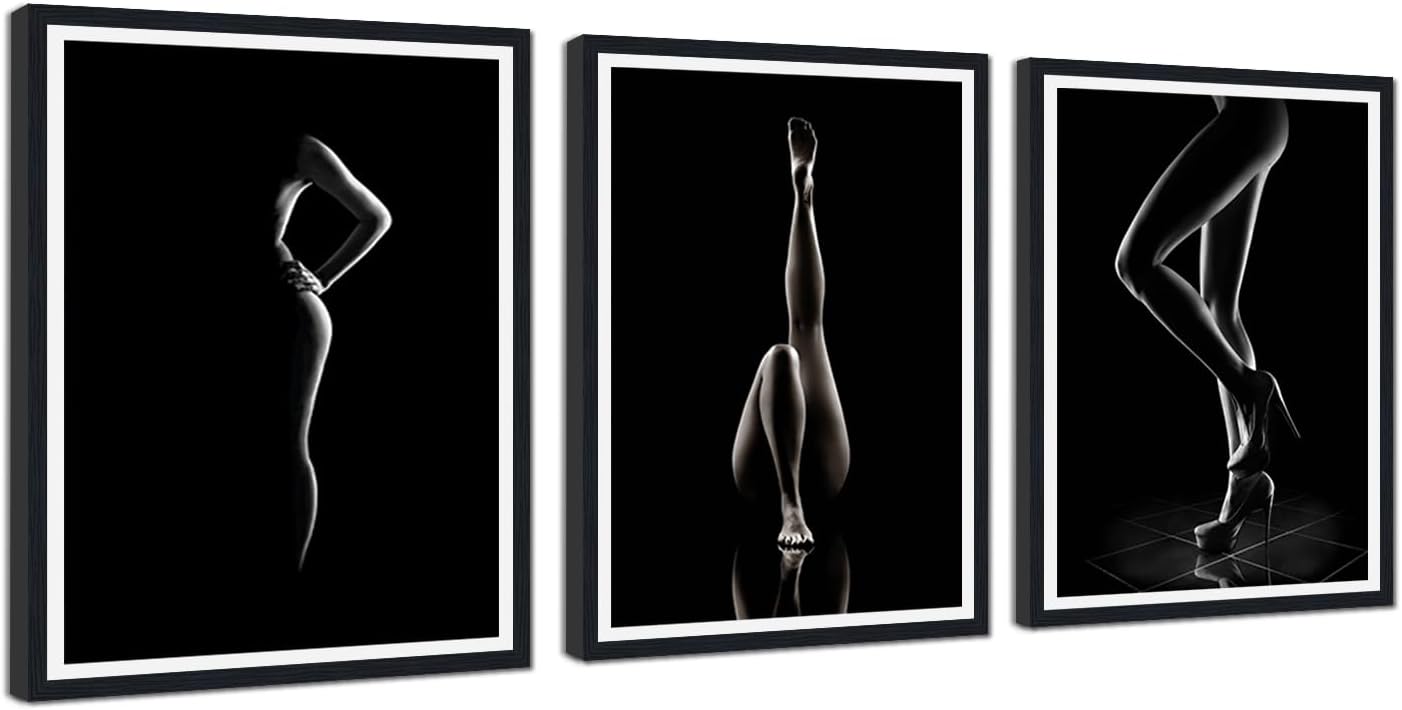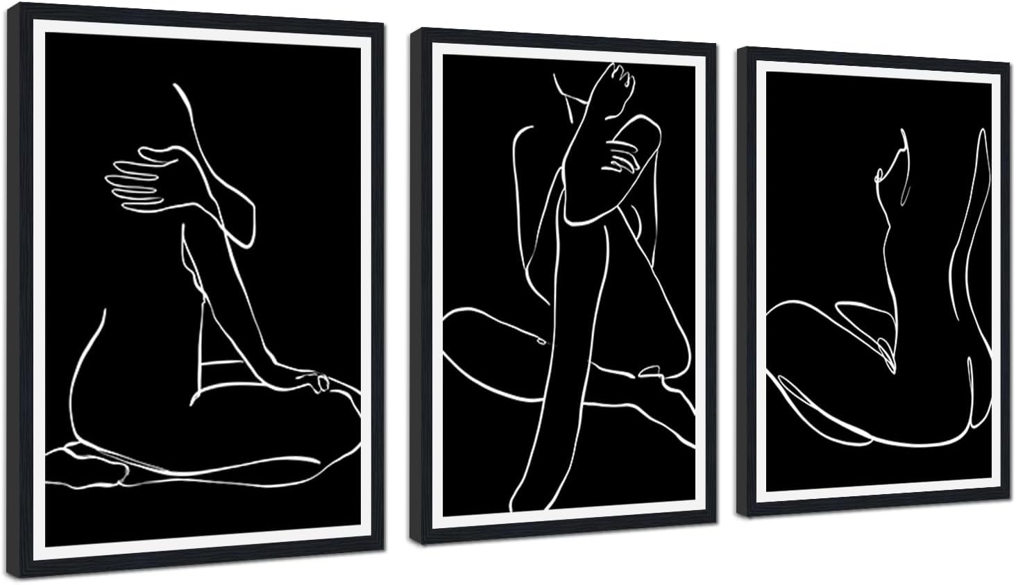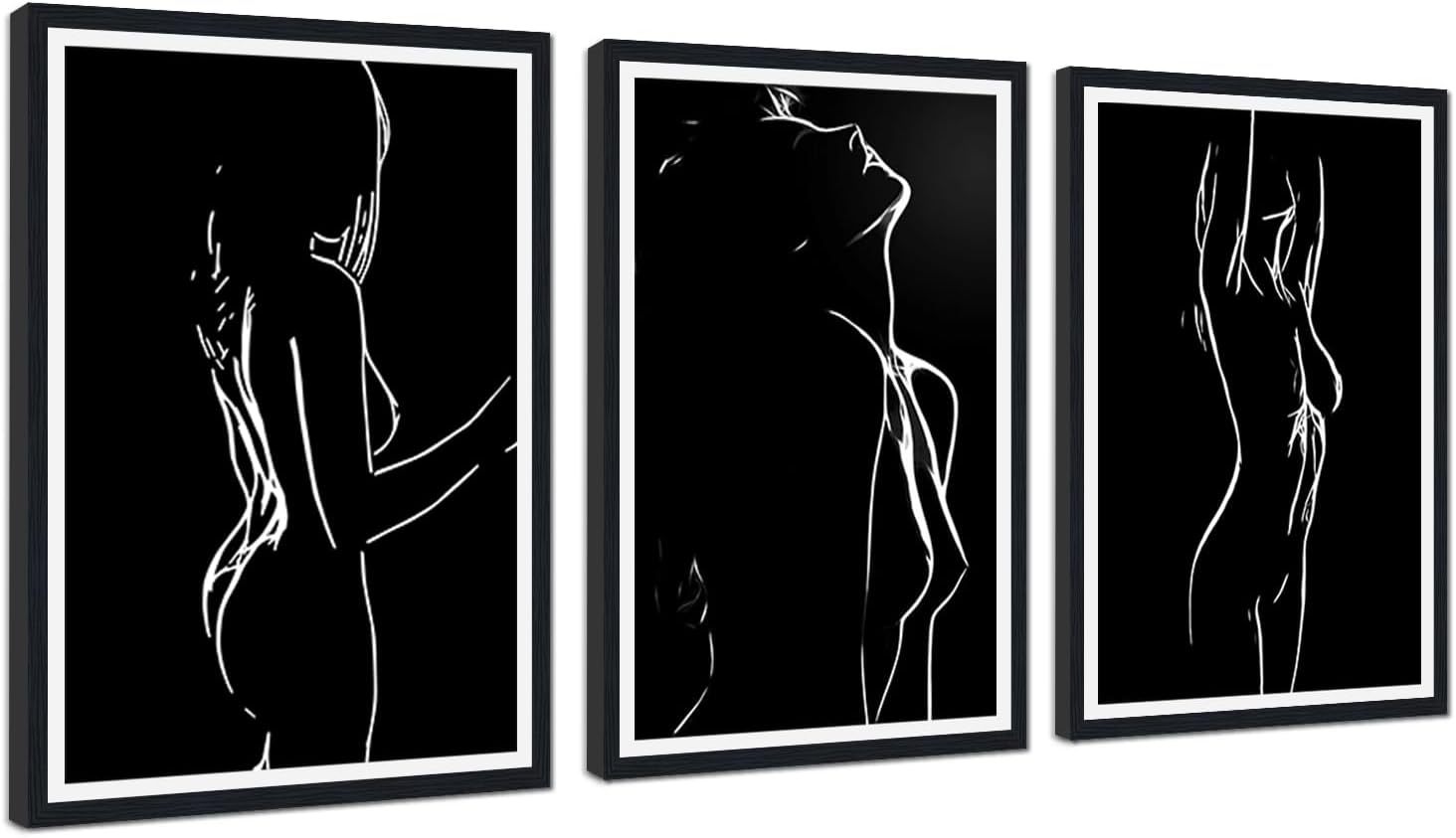 Elevate Your Space with Yatsen Bridge 3-Piece Female's Body Wall Art - Timeless Black and White Art for Modern Interiors Transform your living space with our Elegant Abtract Body Wall Art Set, featuring three exquisite pieces showcasing female forms in various captivating poses. Rendered in sophisticated black, white, and gray tones, these prints utilize a soft, blurred artistic technique to evoke a sense of mystery and elegance Specifications: Quantity: 3 Pieces Material: Canvas Available in 3 sizes:12x16inx3Pcs, 16x24inx3Pcs, 24x36inx3Pcs Frame: Wooden Frame Printing Technology:High-Resolution Giclee Printing Hanging Hardware: Pre-installed hook Artistic Detail: Mystical Aesthetic: Soft, blurred outlines capture dynamic poses—dancing, stretching, and flowing—creating a dreamy, gallery-worthy display. Easy to Integrate & Enhance Space: Lightweight and versatile, this sexy art set serves as a statement wall decoration that quickly transforms empty walls into a focal point, bringing both style and artistic charm to your home. HD Printing & Fade Resistant Quality: Each panel is crafted with high definition printing, bringing the delicate white lines to life against the deep black canvas. The fade resistant inks ensure your intimate scenes stay vibrant for years - whether in sun kissed living rooms or cozy bedroom corners. Ready to Hang Wooden Frames Each piece arrives framed with a sturdy wooden frame, making installation a breeze while also providing added durability. Perfect for Every Art Lover: This exquisite wall art makes a thoughtful gift for art enthusiasts or as a special addition to your own home, perfect for birthdays, housewarming events, or as a unique surprise. Packing: 3 Panel * Framed Sexy Wall Art for Bathroom
