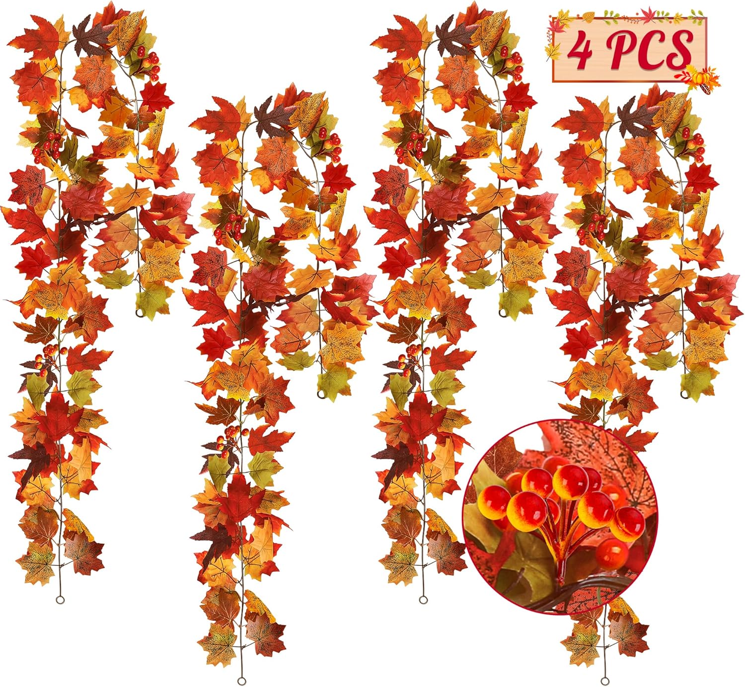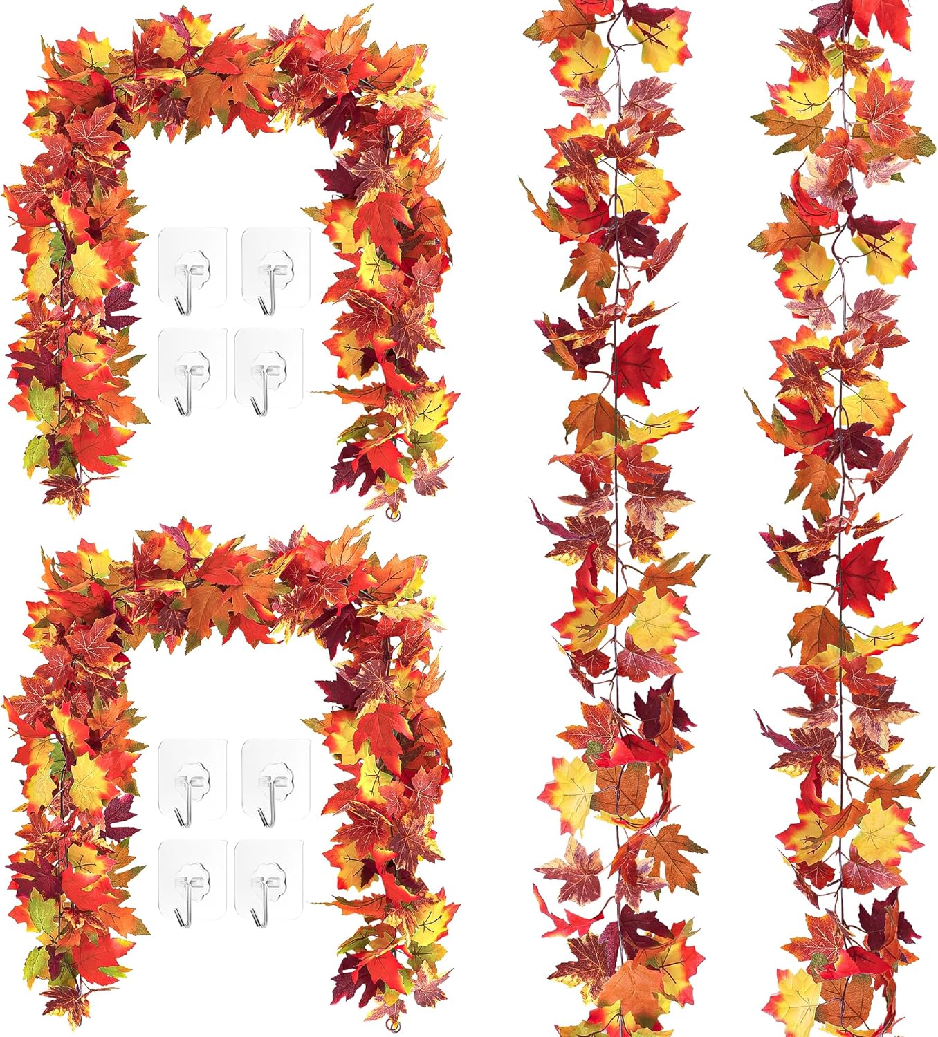 This realistic and natural fake flowers for outside are made of high-quality polyester fiber and plastic, which is resilient and long-lasting. Its anti fading color ensures that your flower wreath remains bright and beautiful in every season.PRODUCT DETAILS:Quantity: 4 Pcs Artificial Rose Flowers VineSize: The Total Length of the Flower Garland is 7.9 FT, and the Diameter of Each Rose is About 2.2 InchesMaterial: Polyester Fiber and PlasticDesign: Each Flower Garland have 45 Roses, Each with 6 Leaves, for a Total of 270 LeavesColor: Red and Green WHY CHOOSE US:High Quality MaterialsWaterproofFade-ResistantWeather-ResistantTwo End Circular Hole DesignWhether decorating a dining table or a door frame, these artificial roses can easily adapt. This 7.9-foot floral wreath is lightweight, bendable, easy to shape, and convenient for creating personalized decorative shapes, making the entire season full of romantic and fresh atmosphere.