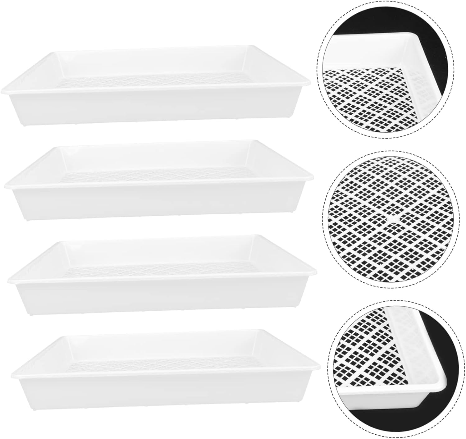 Package List 4 x Plant Germination Trays Features - Color: White Nursery Sowing Tray - Material: Plastic Planting Trays - Size: About 42.00X42.00X5.00cm/16.51X16.51X1.97in Plant Germination Tray - Chassis uses reinforcing reinforcement to consolidate, increase dish experience heavy ability, more deft Growing Trays. - Suitable for breeding plants, it can decorate your garden and balcony so that they are not monotonous Greenhouse Growing Tray. - Suitable for parking lot, plant, roof garden and other engineering greening Plant Growing Tray. - It is suitable for germination, greenhouse, potting work and more Planting Germination Containers. - Selected plastic material, which is not easy to deform or break Plants Nursery Tray.Goods InformationPlant Germination Plate It is easy to clean, and , with .Plant Sowing Trays These plants nursery trays will be a nice choice for your succulent plants, flower or vegetables breeding.Plant Growing Tray and useful plant breeding tools for home or garden use