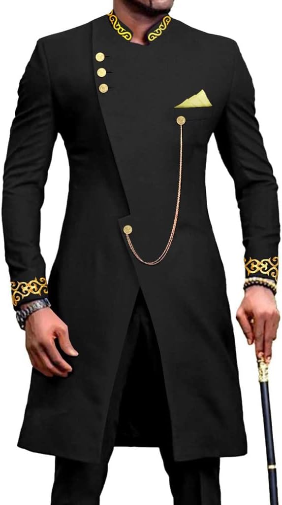 African Men Dashiki Suit 2 Piece SetMandarin Collar DesignUnique mandarin collar and printing highlights your temperament and taste, makes you look more formal and luxurious.Exquisite Cuff PrintingThe long sleeve with african tribal pattern printed on the cuff, you can experience Africa's time-honored tribal culture throughout the time.Adjustable DrawstringElastic waist with adjustable drawstring allows you to adjust loosely according to your body and needs.Practical Side PocketsThe pants made with two side slant pockets are convenient to carry your mobile phone or other belongings.SpecificationStyle: African Ethnic StyleFabric name: 100% Cotton, African wax fabricSleeve length: Long SleevesCrowd: Youth, Adults, Men, BoysSeason: All seasonsUse:Any Occasion, Attending various events, everyday wear or giftOccasion: Perfect for casual,daily dress, party, church, ceremony and galaCleaning:Dry Clean or Water Washing(hand&Machine)Package Content1 x Men's Shirt Top1 x Men's PantsWe care about our valued buyers, if you have any questions, our Customer Service staffs will be very glad to help you!