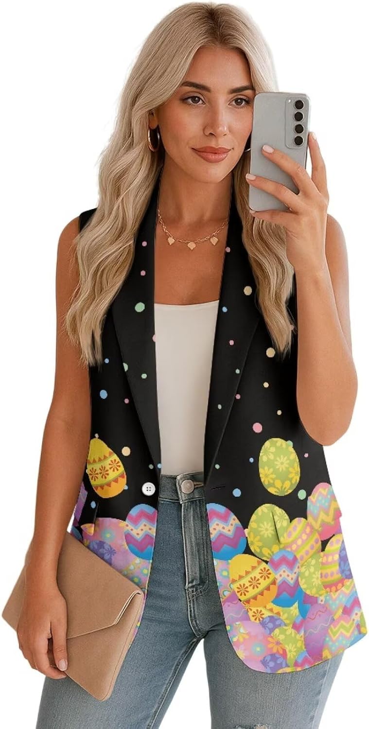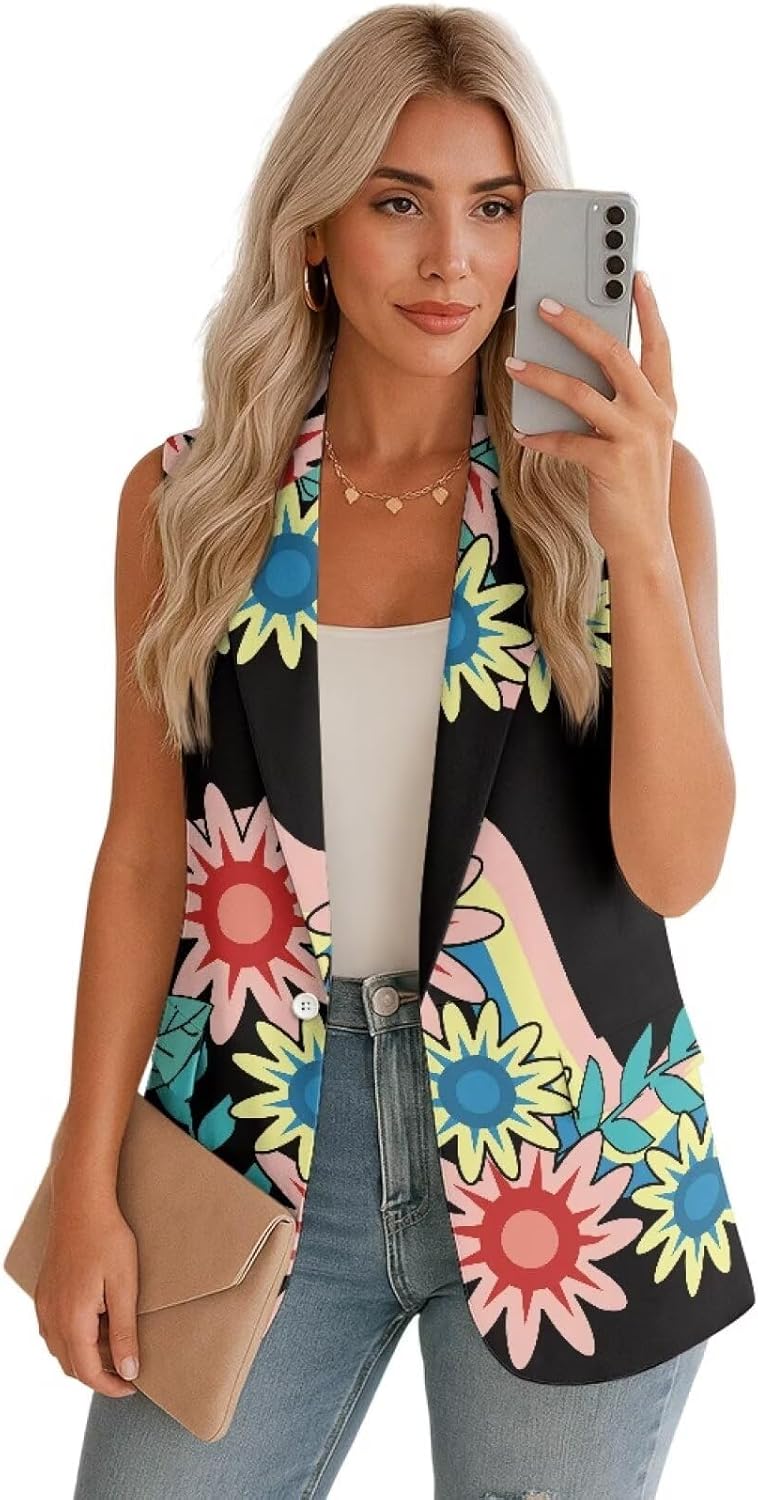 Long Vest for Women Business Casual Sleeveless Open Front Blazers Suit Vests Top Pockets Work Office Waistcoat Features -1 Button -Sleeveless -The sleeveless blazer is suitable for casual street look, business outfit, work office style, holiday, vacation, party, outdoor, leisure time ,work ,school anywhere. Tips Please check out sizes chart in Description Before Purchasing.(NOT Amazon Size Chart!) Please allow little color difference due to different camera or light environment Due to different measurement methods, it is reasonable for 1-2cm size deviation