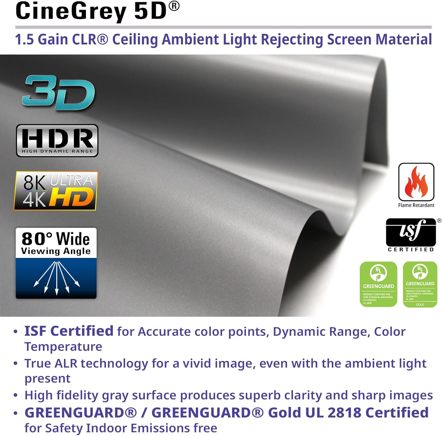 | Screen Finish | Silver Gray - 1.5 Gain, Angular-Reflective Ceiling/Ambient Light Rejecting Front Projection, Standard Throw |