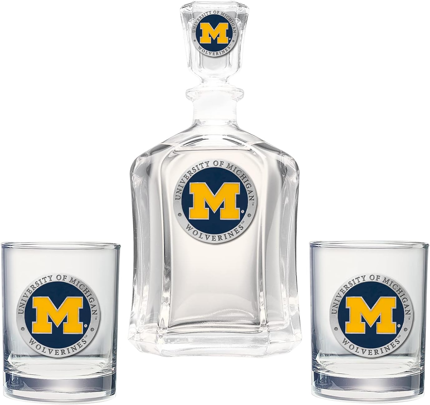 This box set contains a 24-ounce glass decanter and 4 Double Old-Fashioned glasses embellished with a hand-sculpted, highly detailed Fine Pewter casting and placed in a classy wooden chest. The hand-poured enamel coloring makes a great addition to any home bar to showcase your favorite single-malt scotch, brandy or liqueur, this decanter is dishwasher safe.
