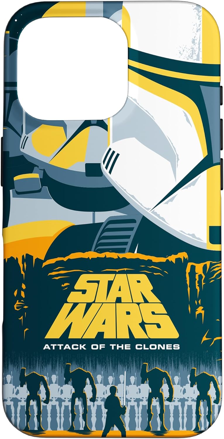 Experience the thrill of a galaxy far away all over again with this awesome Star Wars phone case featuring a stylized take on the movie poster for Star Wars: Attack of the Clones. Showcasing a stunning design of the Clone Army fighting the Battle Droids, this cool Star Wars phone case is sure to turn heads among fans! Available for the following iPhone and Samsung models: iPhone SE (2020), iPhone 7, iPhone 8, iPhone 11, iPhone 11 Pro, iPhone 11 Pro Max, iPhone X/XS, iPhone XS Max, iPhone XR, iPhone 7/8, iPhone 7 Plus/8 Plus, Galaxy S10, Galaxy S10+, Galaxy S10e, Galaxy S9, Galaxy S9+, Galaxy S8, Galaxy S8+.