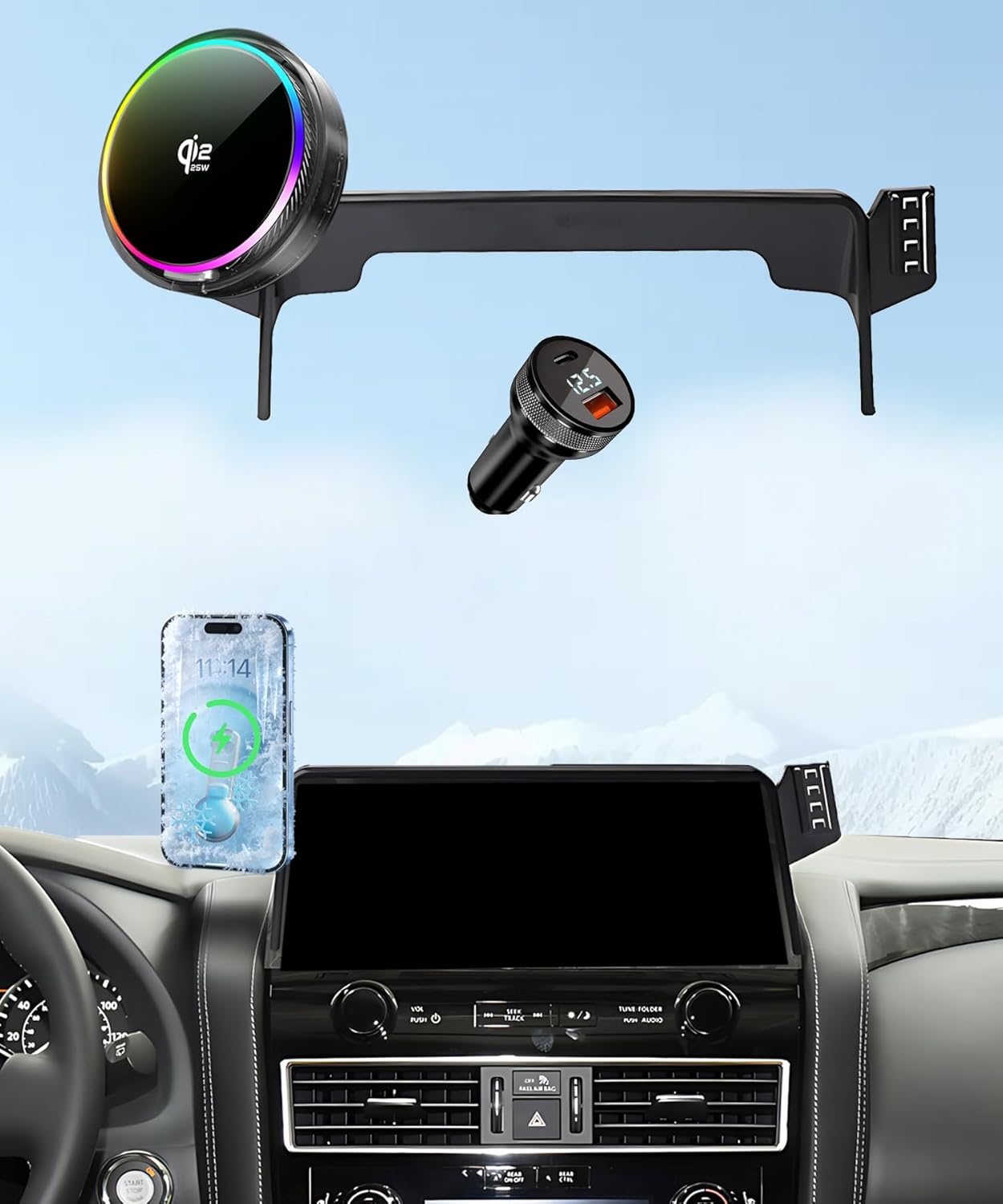 MioBanbo Magnetic Car Phone Mount is custom-fit for 2021 2022 2023 2024 Nissan Armada (12.3-inch touchscreens). It blends seamlessly with your car interior, installing securely without blocking views or air vents No more wobbling or falling! With double security and 20X N55 strong magnets, it locks your phone firmly even on bumpy roads or sharp turns. 360° adjustable ball head lets you switch between landscape/portrait modes freely, ensuring unobstructed driving for navigation, calls or music. Wide compatibility: Works with MagSafe phones/cases directly. For others, 2 metal ring and 2 magnetic clamp (included) are available. Tool-free & drill-free installation. No residue or damage to your car interior, unlike suction cup or air vent mounts. Package includes: 2 magnetic cradle, 2 metal ring, 2 magnetic clamp, 1 3M tape roll, 4 17MM ball heads. Upgrade your driving with a reliable phone mount!
