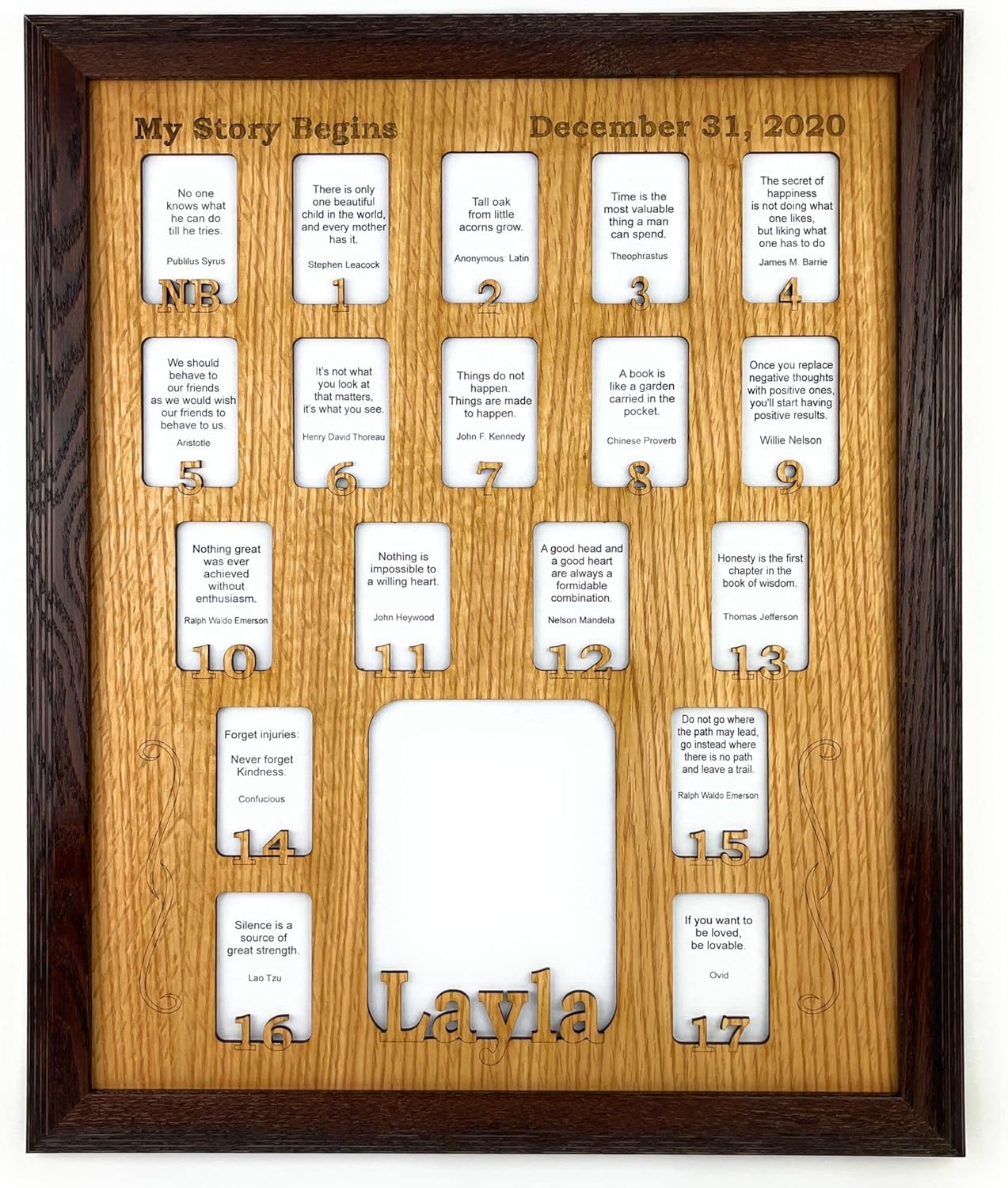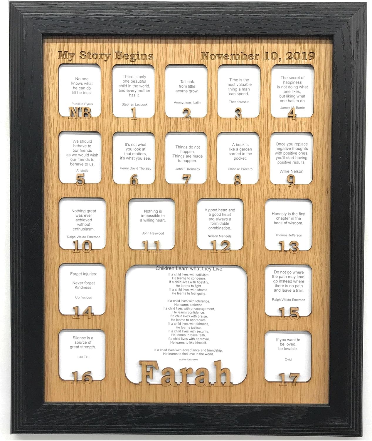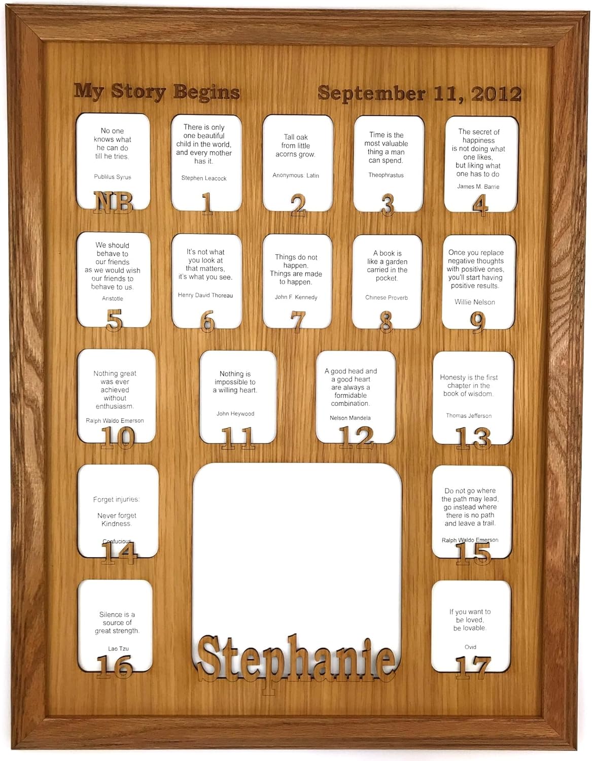 See the progression of your little one growing up before your eyes in this beautiful Newborn to 18 Years Picture Frame. Featuring an opening of each year, this will be a fun way to see how they grow and change from birth through 12th grade. Makes a great birthday gift for new parents or grandparents. Photos shown are examples of what you will receive. Made In America