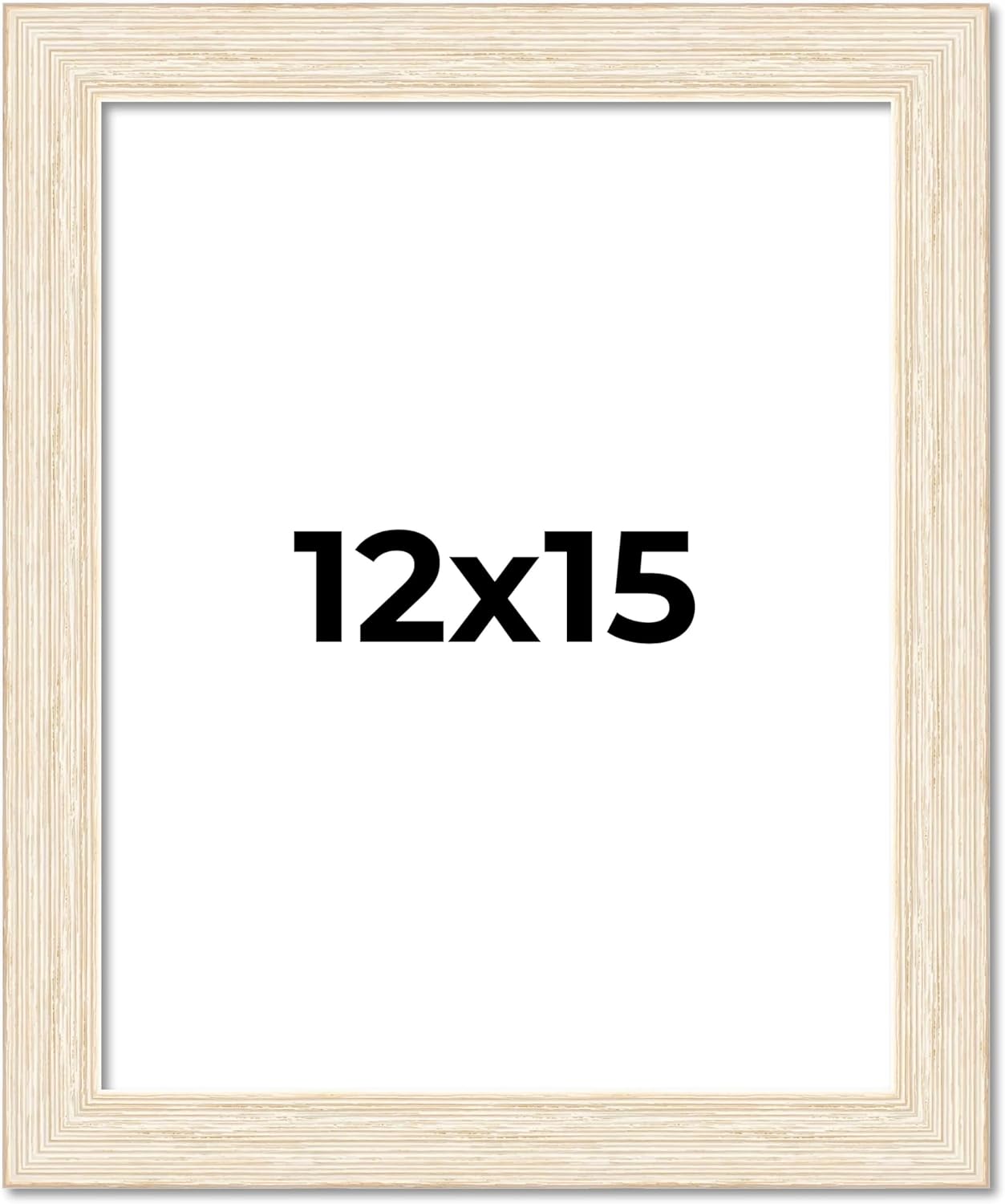 COMPLETE WOOD PICTURE FRAME Made To Display Photos, Artwork, Canvases, Chalk Boards, Documents, Mirrors, Puzzles, Mementos, Kids Drawings, Certificates, and All Other Media Measuring 12x15 Inches. OVERALL FRAME DIMENSIONS Measure 14.25 x 17.25 Inches. FRAME MOULDING WIDTH: 1.125 Inches. || FRAME RABBET DEPTH: 3/8 Inches. COMPLETE FRAME with UV Resistant Acrylic Plexiglass, Acid Free Foam Board Backing, and Hardware. Hanging hardware is included but not installed—easily attach for vertical or horizontal display. MANUFACTURED IN THE USA.