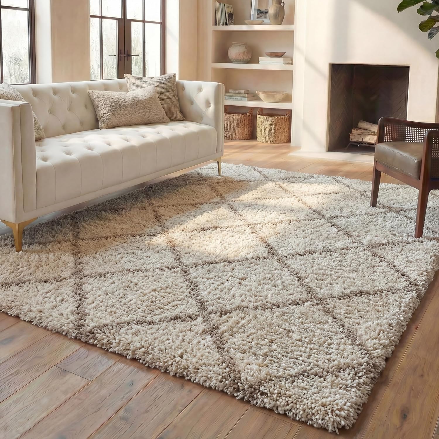 The timeless Hudson Shag Collection by Safavieh displays fashionable designs set in a thick, plush shag pile. Ranging from modern to Moroccan-inspired patterns, these rugs have a lush pile and add a contemporary touch to any room. Durable, easy-care yarns stand tall even in high-traffic living areas with frequent kid or pet activity. Perfect for the living room, dining room, bedroom, study, home office, nursery, kid's room, or dorm room.
