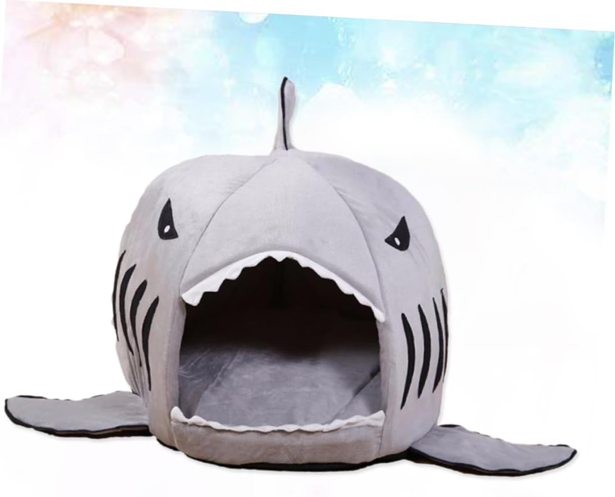 Package Include 1 x Bed House Characteristics - Color: Grey Pet bed house. - Material: plush and cotton Dog house bed. -Product Info:Pet nest - Size S: 42x42x42cm. - Size : 50x50x48cm. - Size L: 60x60x58cm. - Perfect for your adorable pets like dog, puppy, cat, pig, etc Pet warm house. - To keep your and warm Pet plush house. - plush fabric makes your pet comfortable Pet plush bed. - Adopts shark shape, convenient and beautiful.Goods DescriptionPet plush house This is a cozy and warm pet bed house pet, which is made of durable plush and cotton to well dog cat warm and comfortable.Pet bed house Besides, it adopts shark shape, convenient and beautiful for your lovely pet