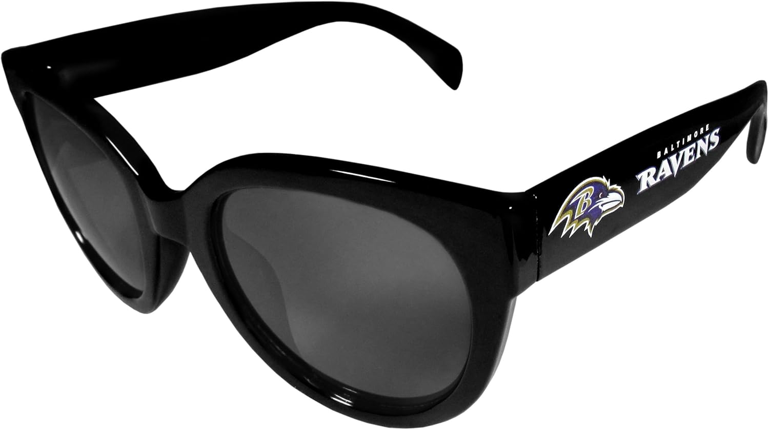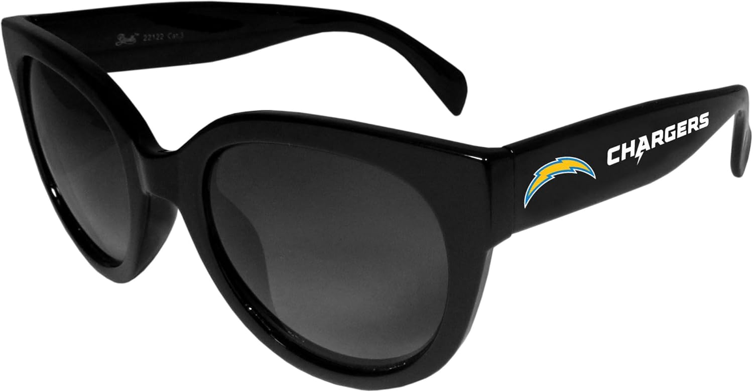 These classic, 60's movie star styled feminine frames are a perfect blend of fashion and sporty style. The high-quality, polycarbonate frames feature the team graphics down both arms. The shades features the maximum UVA/UVB protection and are perfect for cheering on game day or lounging by the pool.