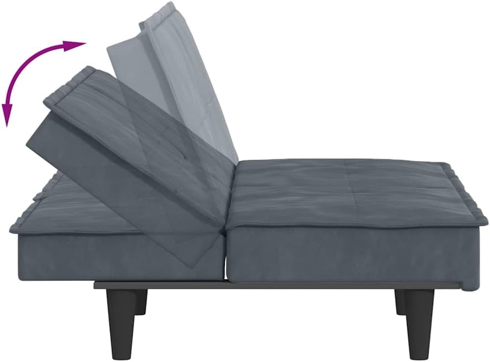 This modern dark grey velvet sofa bed easily switches from a trendy living room seat to a comfy sleep space, ensuring every guest has a snug spot to crash. The sleek look and rich feel blend well with all kinds of interiors, ideal for spaces like the living room, home office, or gaming corner, creating a chill vibe perfect for hanging out.Versatile Functionality: This sofa bed is all about transforming seamlessly into a perfect bed, great for guests or when you just want to chill out.Luxurious Velvet Fabric: Covered in swanky soft-touch velvet, this seat not only looks fab but feels great too, making your space pop.Adjustable Seating Options: With a multi-position backrest, you can find just the right angle for lounging or sleeping—ideal for gaming, reading, or studying.Built-in Cup Holders: With handy cup holders, this sofa bed gives you a spot for drinks while you relax, keeping everything you need at hand.Durable Construction: Made sturdy with plywood and strong plastic legs, this sofa bed provides reliable support for long-lasting enjoyment.Colour: Grey Shape: RectangularMaterial: Farbic VelvetFinish: Soft-Touch Plug Included: NoIndoor/Outdoor: Indoor OnlyCover Included: NoRoom: Living RoomPower Source: PlugBatteries Included: NoCable Length: 100 cmMaximum Number of People: 3Maximum Weight: 110 kgDimensions: 200 x 200 x 70 cm (W x L x H)Leg Height: 15 cmWeight: 2275 kgSeat Depth: 55 cmSeating Capacity: 3Swings: NoDelivery Contains: Sofa bedAssembly Required: YesRecommended Number of People for Assembly: 2SKU: 351921