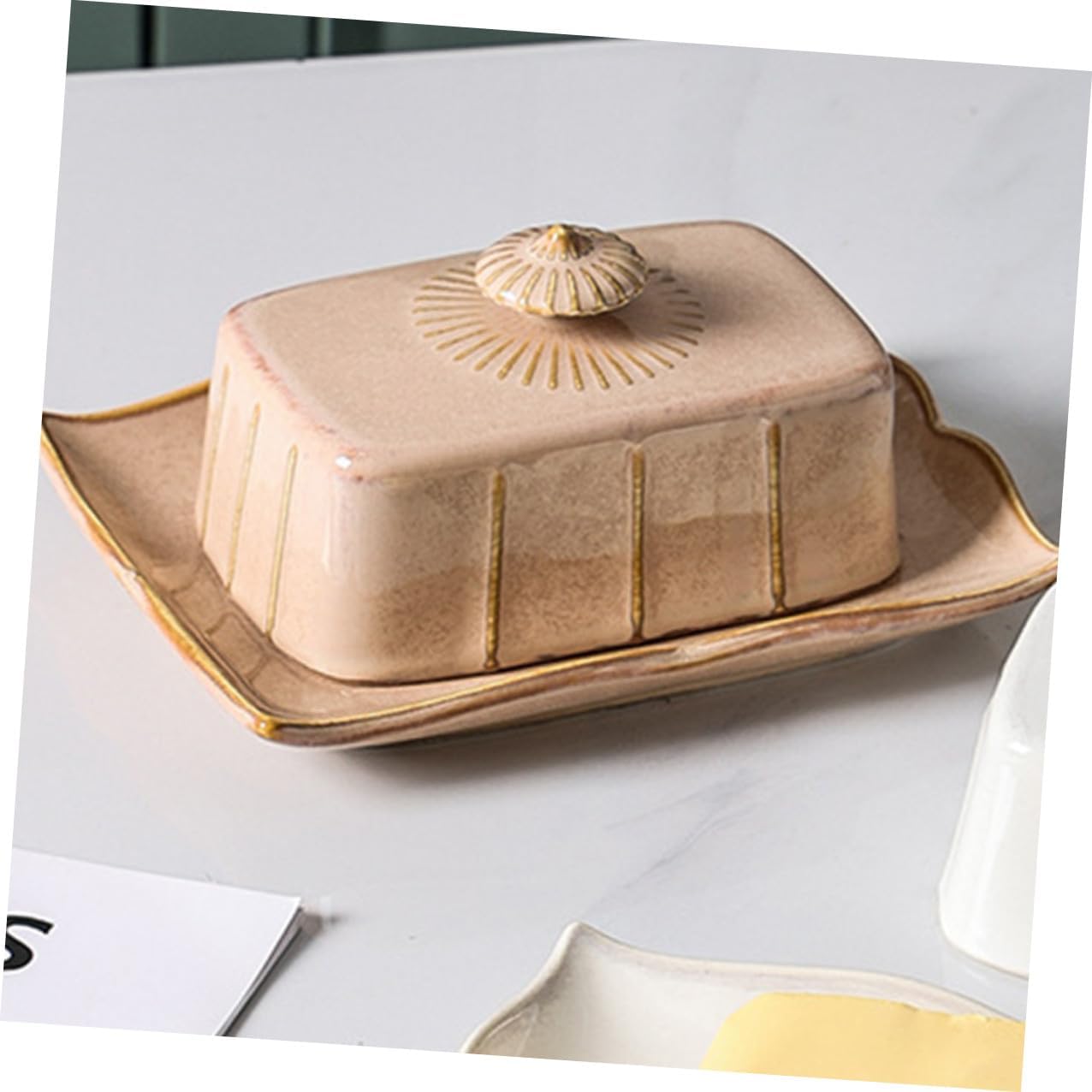 Package List 1 x Set of Butter Box with Lid Characteristics -Product Info:Butter box -Material: Ceramic. - Excellent workmanship, practical design, creative shape, very stylish and chic. Not easy to fade, safe butter plate for table. - Smooth and delicate surface, easy to clean, bright color does not fade, fine grinding. - Ceramic material, stable heat resistance, direct microwave heating. Suitable for restaurants, dessert shops, kitchens and other places. - With cover design, good air-tightness, convenient storage. Suitable for all kinds of snacks, and healthy, easy to take ceramic butter dish with lid. - workmanship the practicality and durability. Special color with excellent design, it is a nice decor.Goods Descriptionterracotta butter dish This is a butter plate full of style romance.Food Dish It can the appearance of the table.covered butter dish It is a good choice for personal use or as a .ceramic butter tray Its surface is smooth and delicate, not hurt your hands and the design is beautiful