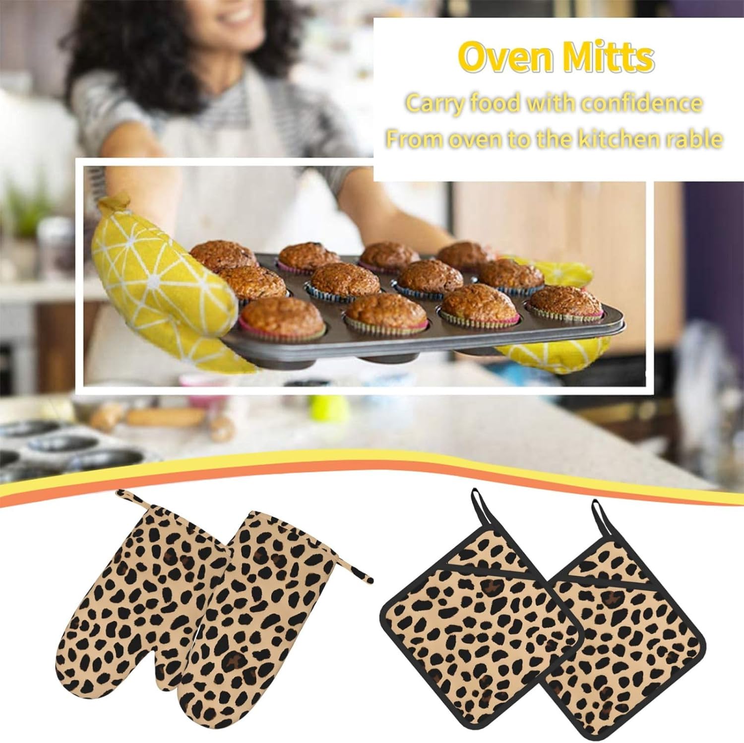 Upgrade your kitchen essentials with this oven mitts and pot holders set, designed for safe and comfortable handling of hot cookware. The set includes 2 heat-resistant oven mitts and 2 pot holders with pockets, making it a practical choice for daily cooking, baking, grilling, and microwave use.Crafted from high-quality polyester with thick insulated padding, these kitchen gloves deliver reliable heat protection up to 260°C. The soft quilted lining ensures comfort and flexibility, while the silicone palm design enhances grip and control when handling hot pots, pans, and trays.The non-slip silicone surface provides added stability, giving you confidence when moving hot cookware. Waterproof inner and outer layers make cleaning simple—just wipe clean or hand wash and air dry for easy care.Each piece features a convenient hanging loop for organized storage and quick access in your kitchen. Stylish and functional, this oven mitts set also makes a thoughtful gift for family and friends on holidays, housewarmings, and special occasions.